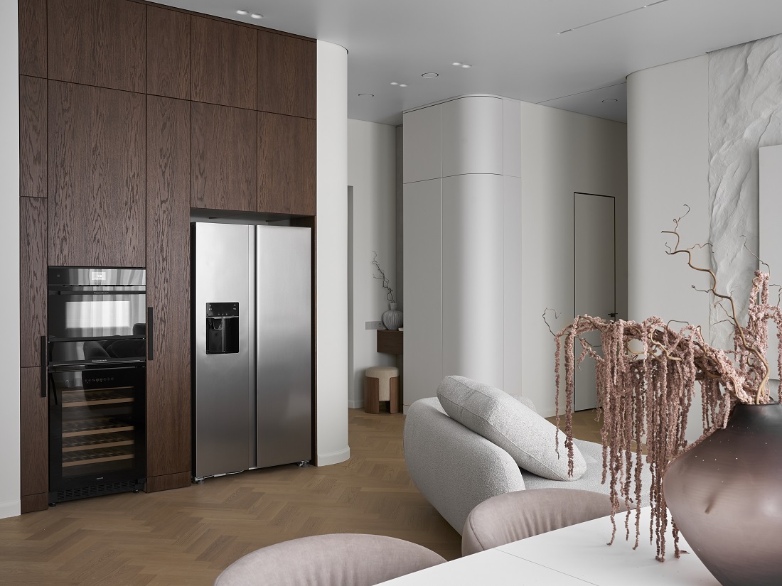 Квартира в ЖК AFI Park Воронцовский в Москве площадью 98 кв.м в минималистичном стиле — это интерьер, где нет ничего лишнего, при этом есть и декор, и детали.